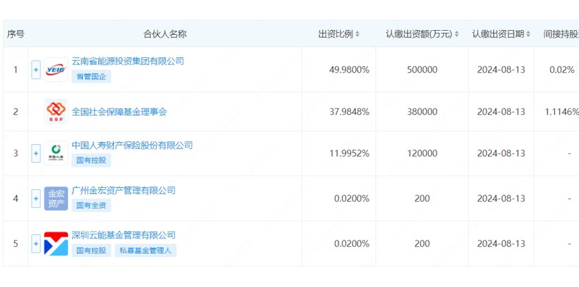 社保基金现身。投资界-解码-LP获悉,日前云南新能股权投资基金合伙企业(有限合伙)(简称“云南新能基金”)在昆明成立,社...