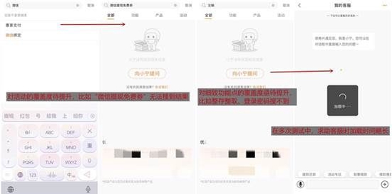 在多机型测试中,个别安卓机型出现不兼容的情况。此外,App操作流畅度有所提升(IOS客户端一般),但诸如智能客服加载时间依然较长,仍可更进一步。