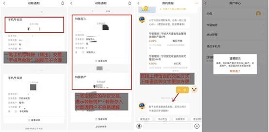 消息提醒方面,宁波银行App“消息中心”整合了“消息”和“待办”,支持设置消息保留期限。与2021年评测时相比,“消息”在小宁理财经理、银行公告、热门活动等多类消息基础上,补上了“动账通知”。用户每一笔动账交易,App会推送通知,每笔通知可读性待提升——看不到交易对手信息(详情里也没有),诸如活转定交易提醒不好理解。
