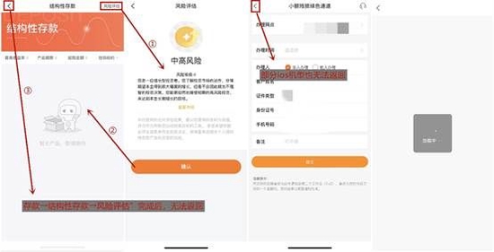 不过,App个别交互存在bug,只能强制退出App:一是,“存款→结构性存款→风险评估”完成后,无法返回;二是,部分IOS客户端“网点查询→小额残损绿色通道”无法返回。