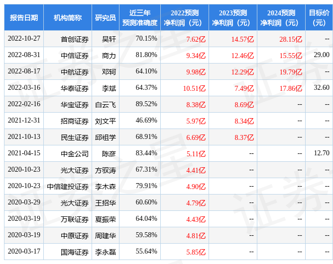 以下是详细的盈利预测信息: