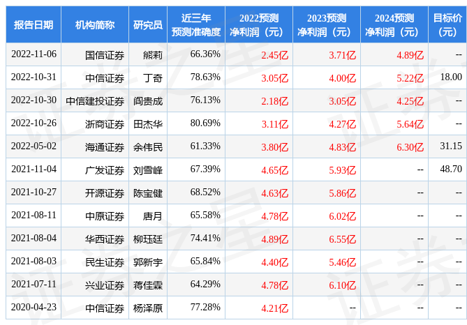 以下是详细的盈利预测信息: