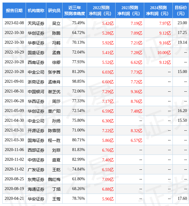 数据中心根据近三年发布的研报数据计算,浙商证券孟维肖研究员团队对该股研究较为深入,近三年预测准确度均值高达98.85%,其预测2022年度归属净利润为盈利6.6亿,根据现价换算的预测PE为22.85。