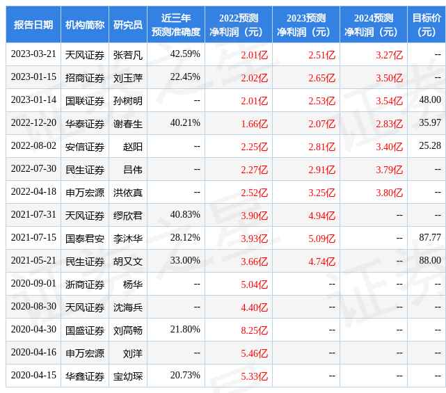 最新盈利预测明细如下: