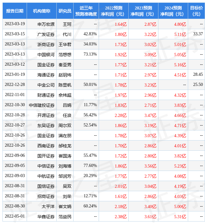 以下是详细的盈利预测信息: