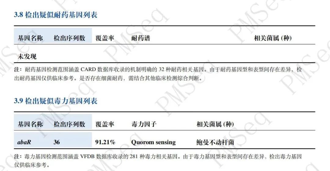 PMseq 报告配置不断更新升级,使其更完善!更全面!更科学!配置PMseq 默认报告模板以及个性化报告模板;上线“检出疑似耐药基因列表”和“检出疑似毒力基因列表”;升级“参考文献”和“微生物说明”数据库!