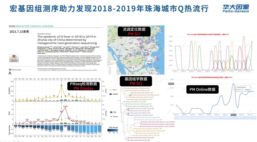 2021年7月,中山大学附属第五医院联合华大基因研究团队,在国际期刊《PLoS Negl Trop Dis》(IF=4.4) 上发表一篇科学论文,阐述了2018年底至2019年初,研究者利用宏基因组测序技术 (mNGS) 在珠海监控到了城市Q热疫情流行[1]。
