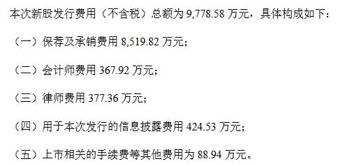 杰普特发行费用总计9778.58万元,其中,支付给保荐机构中金公司、联席主承销商红塔证券的承销及保荐费用8519.82万元,支付北京金诚同达律师事务所的律师费用377.36万元,支付瑞华会计师事务所(特殊普通合伙)的审计验资费用367.92万元。