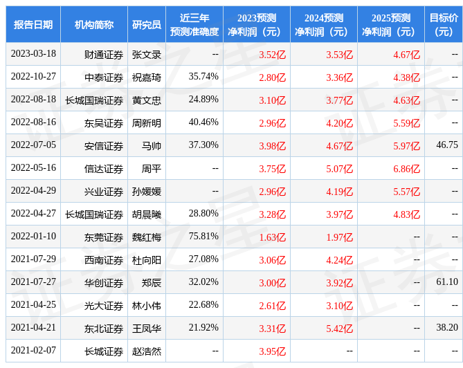 以下是详细的盈利预测信息: