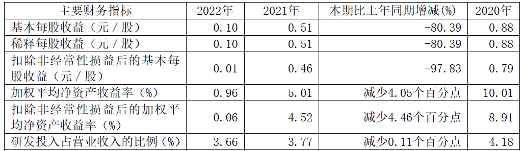 2022年,华光新材的加权平均净资产收益率为0.96%,上年同期为5.01%,同比减少4.05个百分点;基本每股收益为0.10元/股,上年同期为0.51元/股,同比下降80.39%。