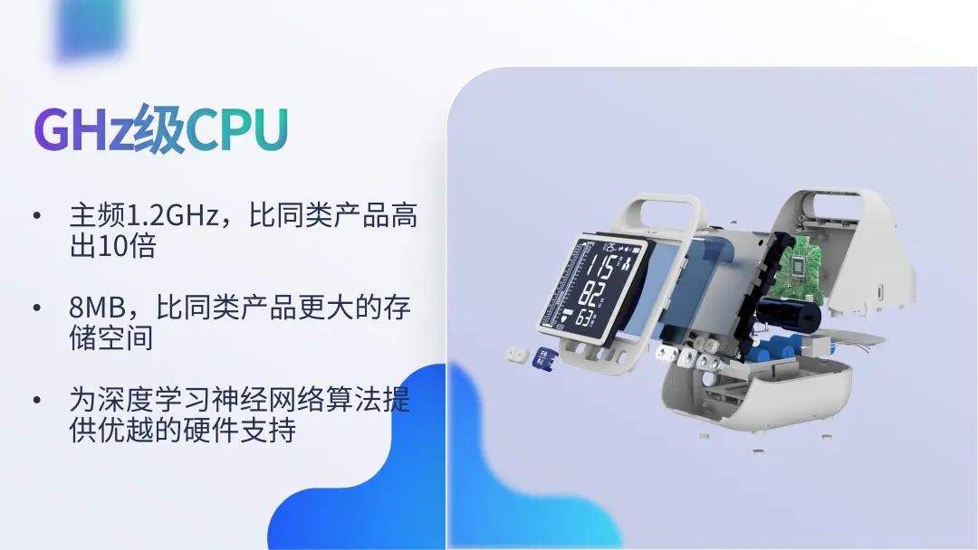 汉王电子血压计,采用双传感器模式,让采集到的血压信号更加优质。搭载GHz级的CPU,1.2G的主频以超出同类产品数倍的性能,为汉王自研深度学习神经网络算法提供优越的硬件支持,可对测量结果进行深度优化,在柯氏音法的基础之上让血压检测结果更加准确。