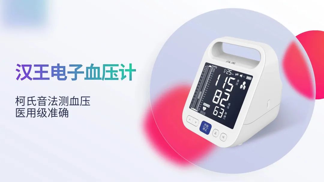 不同于当前市面上使用示波法原理的电子血压计,汉王电子血压计采用血压测量金标准中的柯氏音法,由此引领一场电子血压计领域颠覆式革命,开启电子血压计的医用级准确测量全新时代。