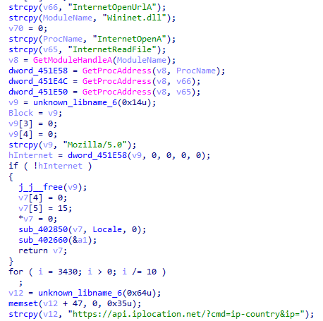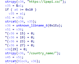 ③将上一步获取到的外网IP地址在(api.iplocation.net,ipapi.co等)Web服务中查询所属国家的名称。