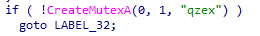 4、创建互斥体名为“qzex”,保证木马自身单实例运行。