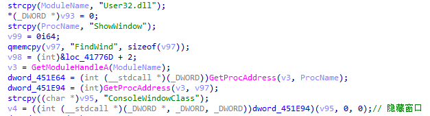 3、该远控运行后首先隐藏运行窗口。