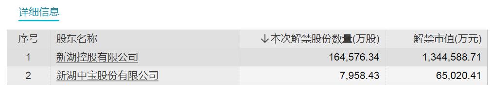 湘财股份解禁详细信息