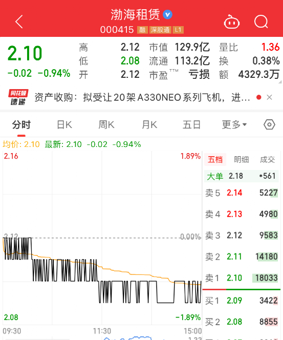 值得注意的是,渤海租赁已经连亏3年,不过防疫优化后航空业也在逐步复苏,今年一季度为盈利。6月21日收盘,渤海租赁报收2.1元,总市值130亿元。截至今年6月9日,渤海租赁股东户数7.63万户。