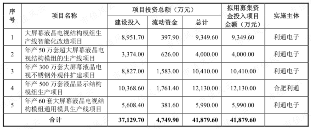 2018年12月,利通电子IPO合计募集4.82亿元,用于年产500万套液晶显示结构模组等项目。