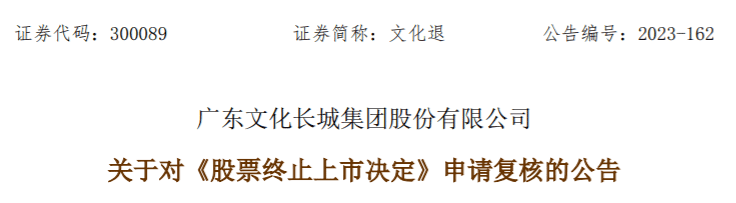 对此,文化退在规定期间内,向深交所提交了复核申请。根据相关规则规定,深交所将在收到公司提交的复核申请文件之日后的5个交易日内,作出是否受理的决定。