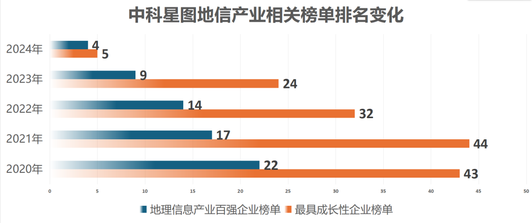 (中科星图近五年荣获地理信息产业百强企业、最具成长性企业榜单排名)