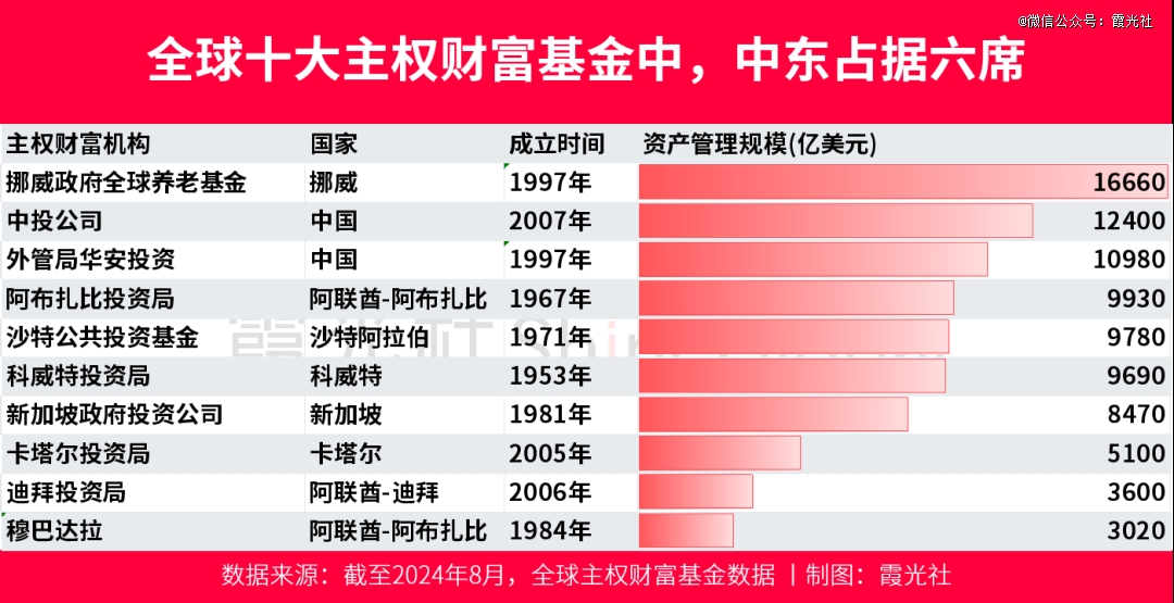 目前,中东前五大主权财富基金管理着约4万亿美元的资产,这一数额超过了英国的GDP;而到 2030 年,中东主权财富基金的总资产预计将达到 7.6 万亿美元。