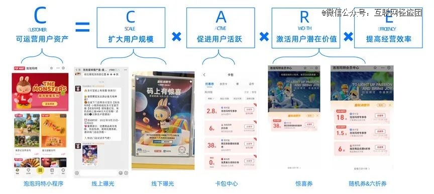 另一个案例是泡泡玛特:2022年秋季大促期间,通过支付宝“三券齐发”(惊喜券、商品券、随机券),以及线上线下、公域私域相结合的全域运营,在15天内撬动了4899万销售额,ROI高达3772倍,其中新客占比60%以上!如果说这次活动还有什么缺陷,那就是在支付宝站内承接转化时,由于小程序模块不够丰富,在一定程度上影响了用户转化率、流失了销售机会。为了改善上述问题,泡泡玛特专门组建了支付宝小程序运营团队。