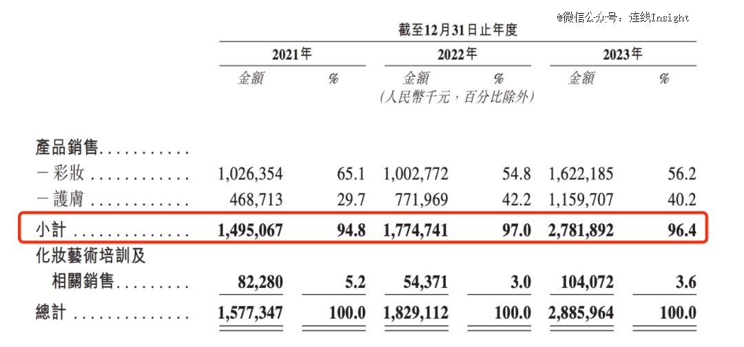 与此同时,比起产品销售,其化妆艺术培训业务,在公司营收中的占比也不高,仅有3.6%。