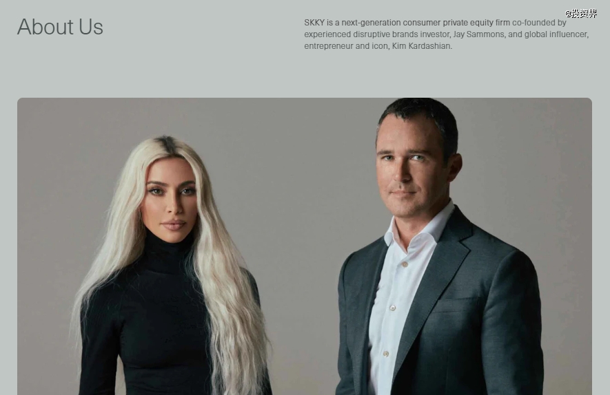 在创立Skims后的2022年,卡戴珊还做起VC,与凯雷集团的前合伙人Jay Sammons共同创立了一家创投机构——SKKY Partners,瞄准消费品、酒店、奢侈品、数字商务和媒体等领域的初创公司。