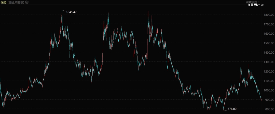 同2022年左右板块大底776点相比,如今的保险板块指数已经翻倍,距离2018年的历史高位1845.42点似乎也只剩一步之遥。