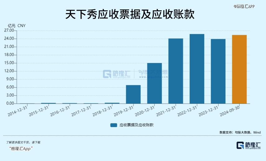 同样引人关注的是,天下秀的应收账款体量较大,近几年来,天下秀的应收账款余额均维持在较高水平,2022年末、2023年末,天下秀应收账款余额分别为26.68亿元、25.7亿元。到今年前三季度应收账款仍有25.3亿,并没有明显减少。
