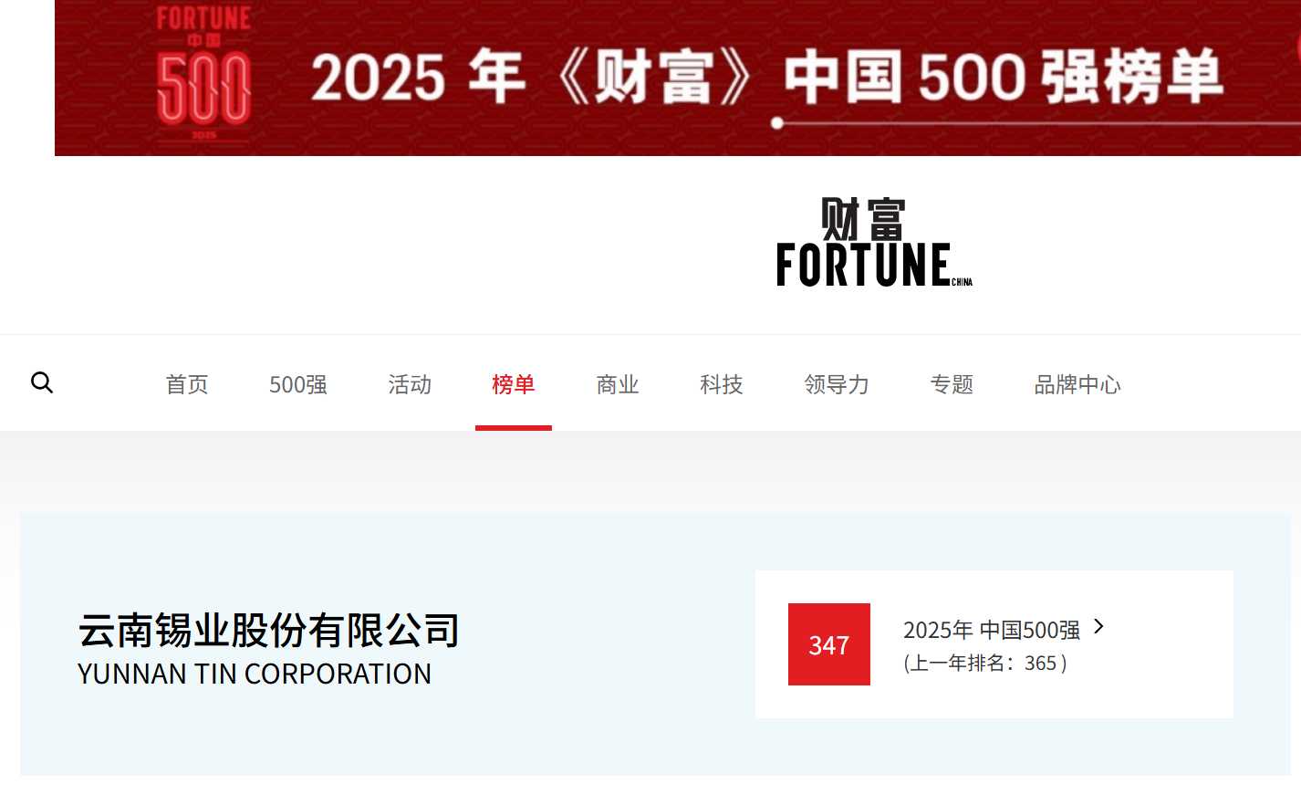 7月22日,2025年《财富》中国500强排行榜发布,锡业股份(000960)位居第347位,较去年排名上升18位。