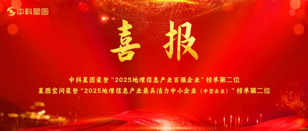 近日,中国地理信息产业协会发布了2025地理信息产业百强企业、最具活力中小企业、最具成长性企业等榜单。中科星图股份有限公司(简称“中科星图”)荣登“2025地理信息产业百强企业”榜单第二位;中科星图旗下中科星图空间技术有限公司(简称“星图空间”)荣登“2025地理信息产业最具活力中小企业(中型企业)”榜单第二位。同时,中科星图与星图空间也共同入选“2025地理信息产业最具成长性企业”榜单。