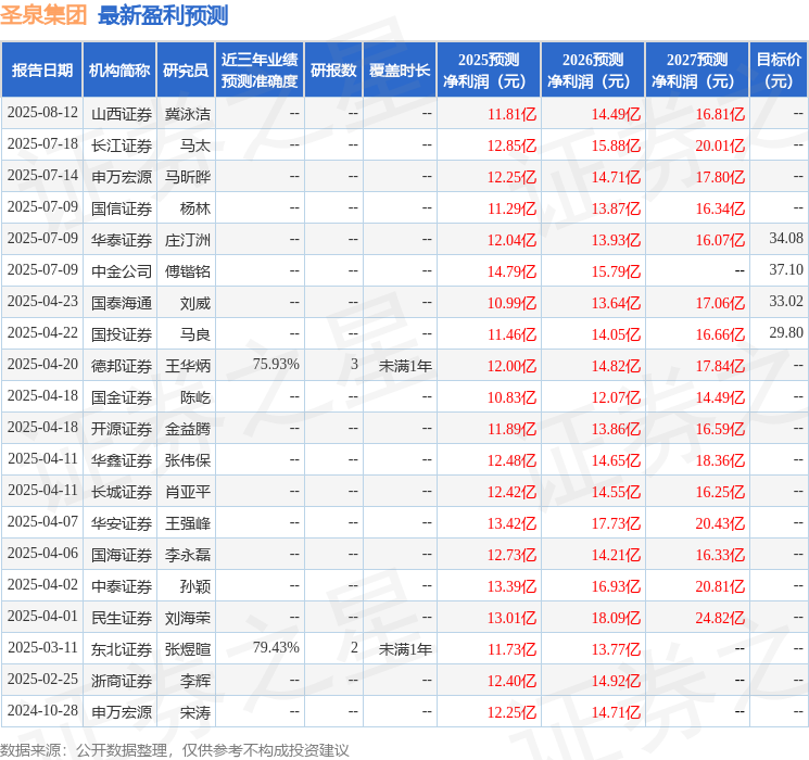 最新盈利预测明细如下: