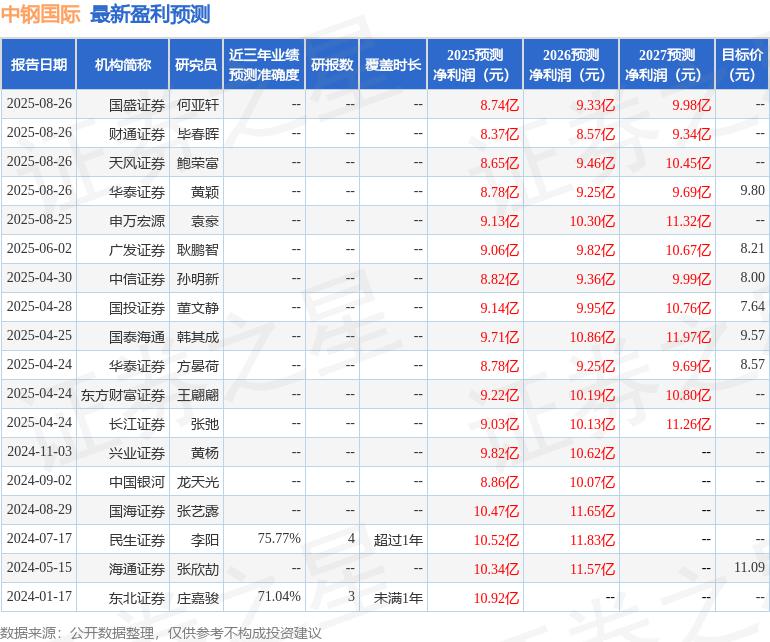 证券之星数据中心根据近三年发布的研报数据计算,民生证券李阳研究员团队对该股研究较为深入,近三年预测准确度均值为75.77%,其预测2025年度归属净利润为盈利10.52亿,根据现价换算的预测PE为8.97。