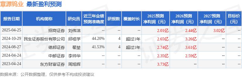 民生证券股份有限公司邱祖学,李挺近期对章源钨业(002378)进行研究并发布了研究报告《2025年半年报点评:钨价上涨增厚利润,刀具有望持续放量》,给予章源钨业买入评级。
