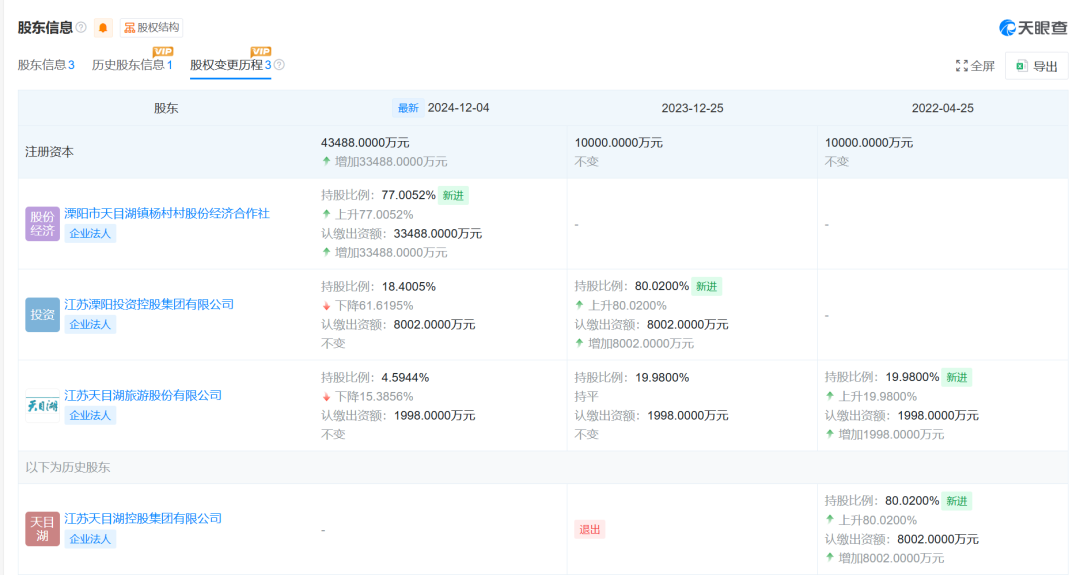 值得注意的是,参与其中的A股上市公司天目湖(603136.SH)早在2024年8月就发公告要为该项目增资近1.8亿元,但至今仍未履行。而项目中的国资大股东早在10个月前就已大幅撤出,持股从超80%将至约18%。