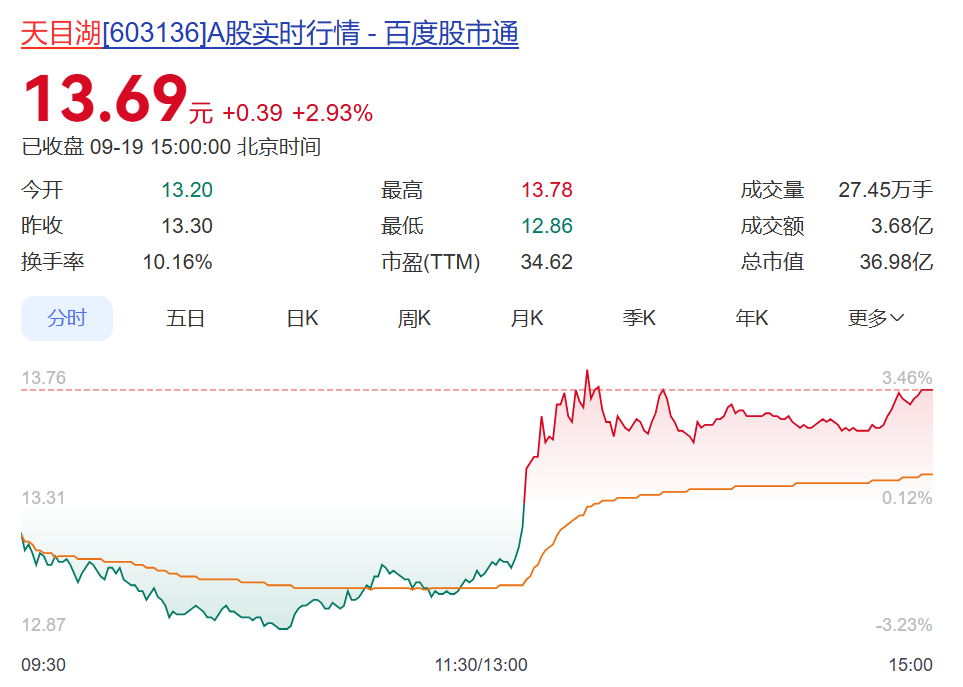 9月19日,天目湖股价先跌后涨,截至收盘涨近3%。