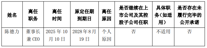 10月10日盘后,大商股份(600694)发布公告称,公司于近日收到陈德力的书面报告。陈德力因个人原因无法继续履职,申请不再担任公司董事长、CEO以及董事会专业委员会内一切职务,后续将不在公司其他岗位任职。