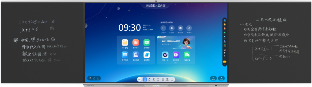 这意味着,智慧黑板不再是以往低智能化、弱适应性的辅助性显示工具,而是融合人工智能、数据分析和多模态交互的智慧终端,更是教师的教学助手,学生的学习伙伴——真正意义上的“AI同窗”。
